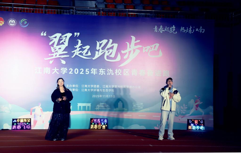 活动伊始,大学生艺术团带来暖场节目《迎风起跑》,动感的旋律和活力的舞蹈迅速调动起现场气氛。在曲水桥跑团的带领下,全场师生进行了科学系统的热身活动《热炼江南》,为即将开始的奔跑做好充分准备,确保运动安全。