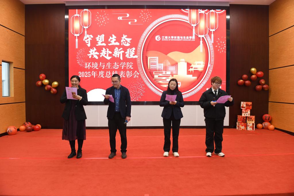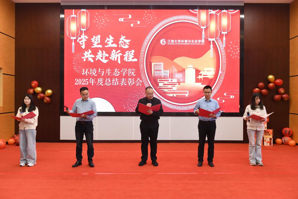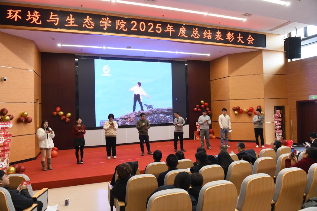 在东氿校区钱盘生楼A101报告厅隆重举办“守望生态,共赴新程”2025年度总结表彰会。学院党政领导、获奖教师代表、各系师生代表欢聚一堂,共同回顾过去一年的奋斗历程,擘画未来发展新蓝图。担任本次表彰会的主持人为专业教师陈思思与张小凯。