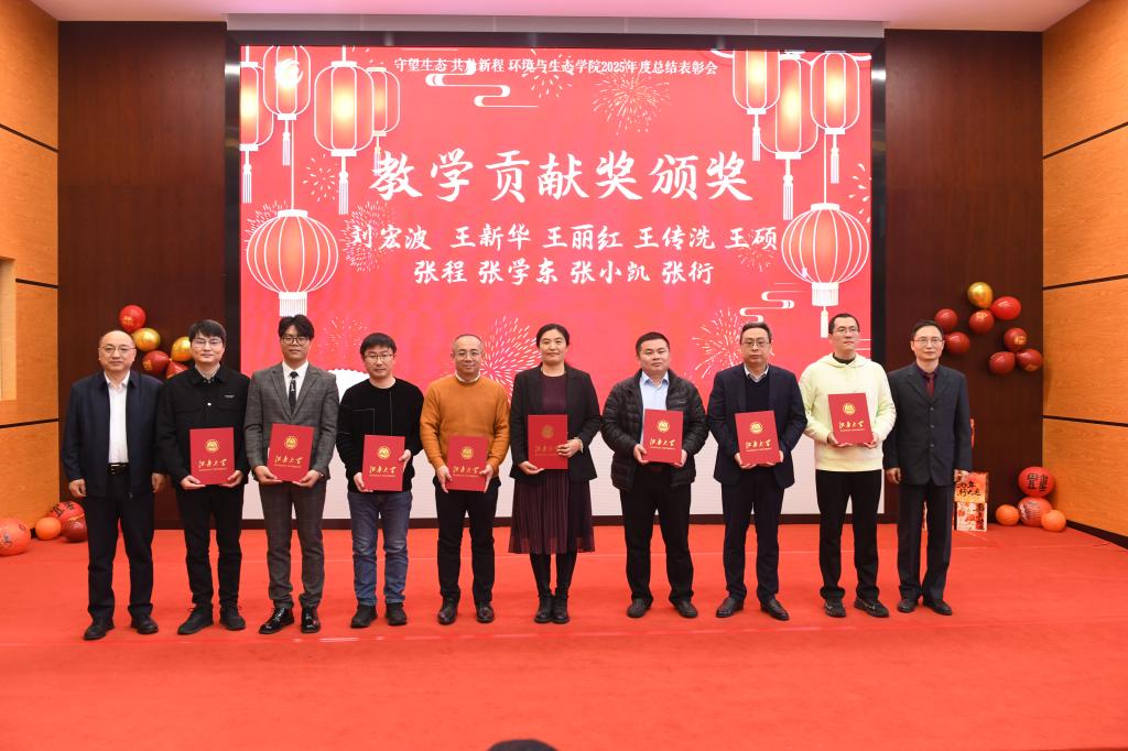 在热烈的气氛中,表彰环节正式开始。首先颁发的是“服务贡献奖”,向在学院管理、行政、实验室等岗位上默默耕耘的教职工致以崇高敬意。他们恪尽职守,甘于奉献,以平凡岗位上的不平凡坚守,为学院各项工作的高效运行提供了坚实保障,让集体充满温暖与力量。随后颁发的“教学贡献奖”表彰了深耕教学一线的优秀教师代表。获奖教师中,有的锐意创新教学方法,激发学生潜能;有的深耕特色班级建设,夯实育人根基;有的躬耕讲台数十载,潜心传道授业;有的悉心指导学生竞赛,助力学子斩获殊荣。他们以多元的育人方式,共同浇灌着环境学子的成长成才之路。
