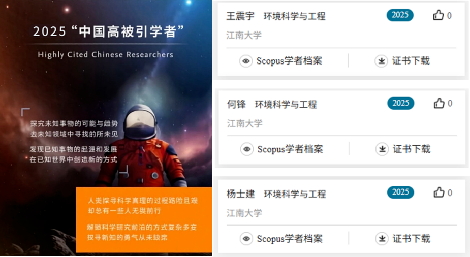 王震宇教授、何锋教授、杨士建教授再度入选该榜单环境科学与工程学科类别,充分彰显了学院在该领域的科研实力与国际影响力。