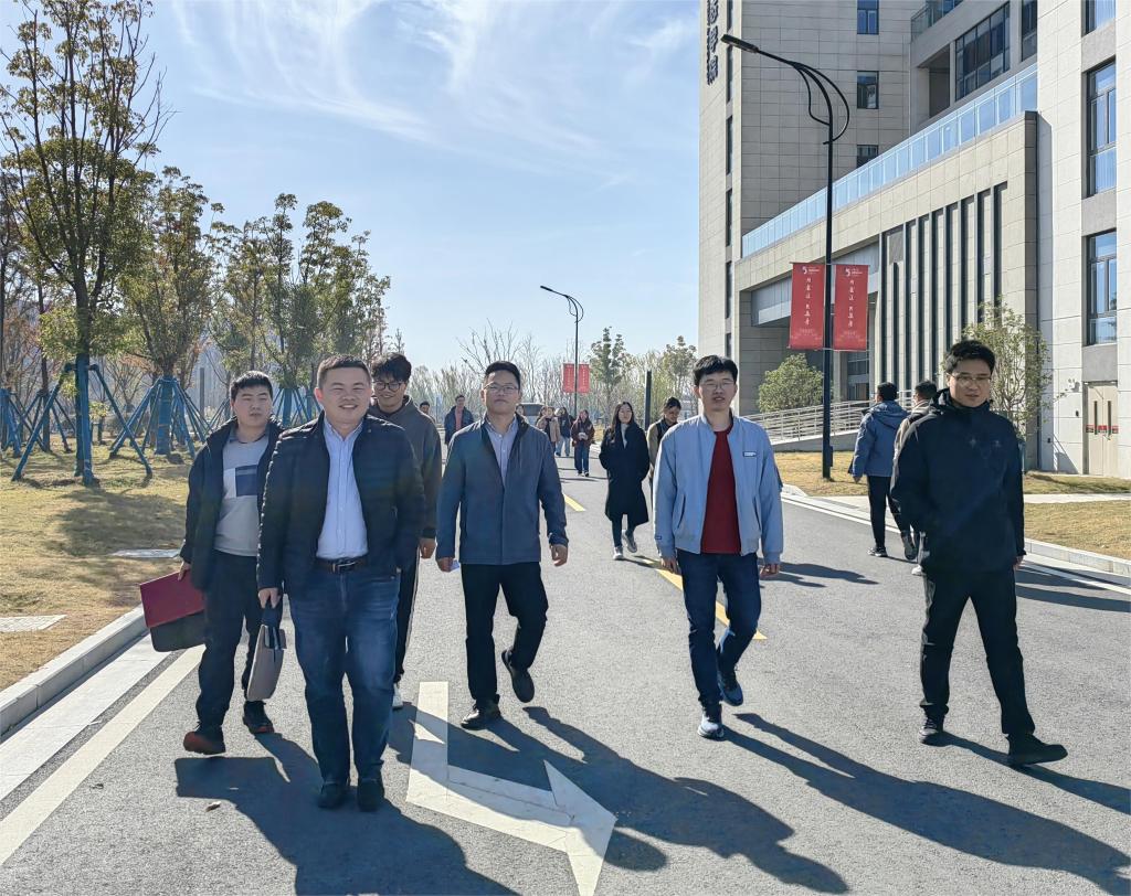 徒步路线从钱盘生楼大厅出发,途径体育馆、知行楼、国际交流中心。在徒步中,老师们暂时放下手中繁重的工作,沐浴在午后的阳光里,感受着新校园所独具的江南建筑风韵带来的区域文化特色,谈笑风生,其乐融融。