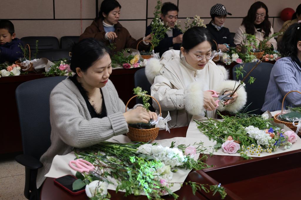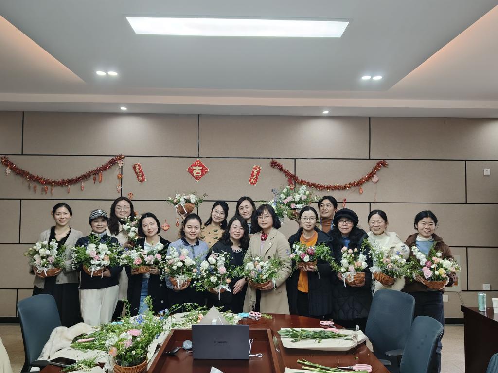 工会组织全体女教职工开展“情暖三月,巾帼花香”插花活动。