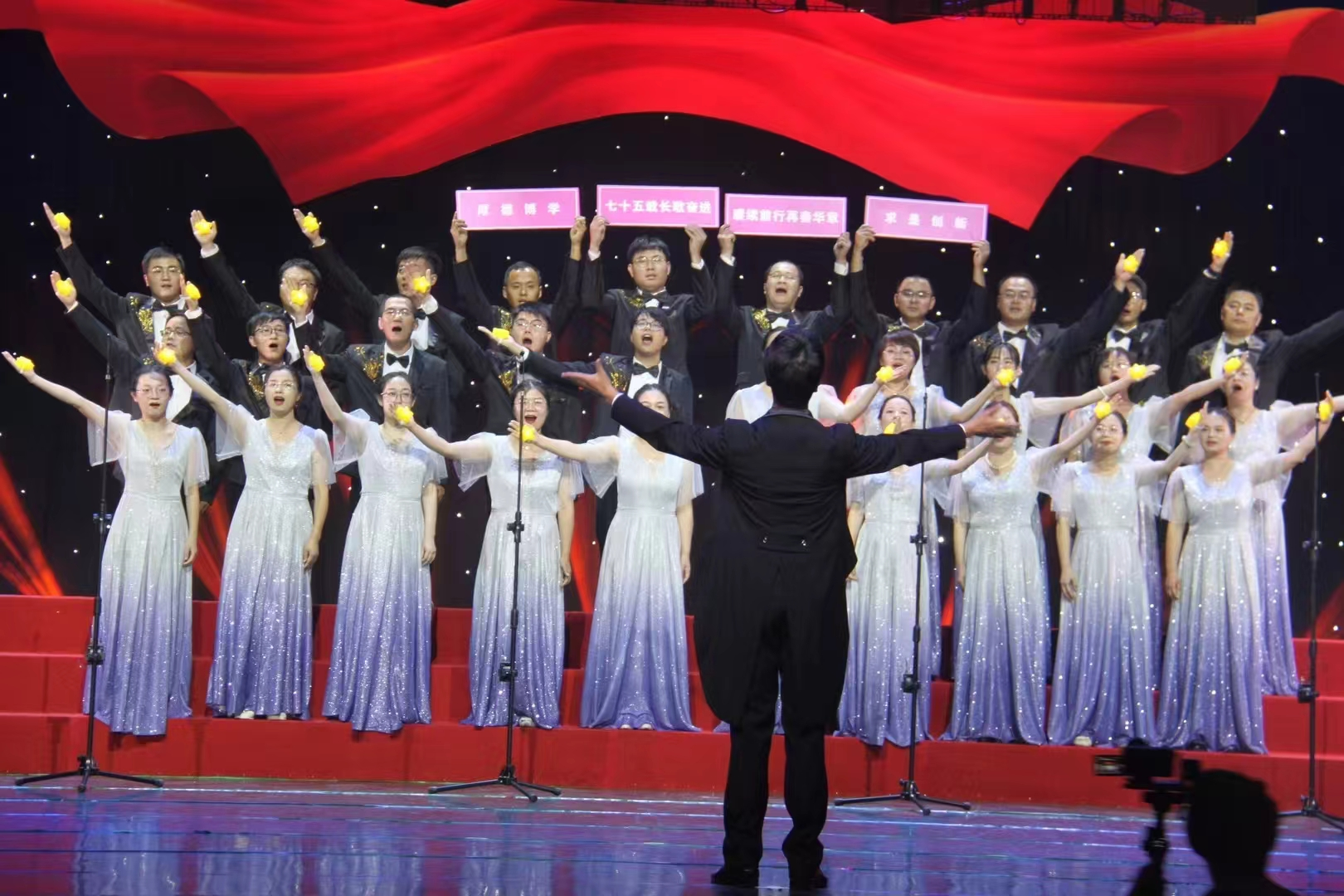 本次合唱汇演自金秋九月启动以来,学院教职工积极响应号召,认真参加排练,为庆祝祖国成立75周年献上佳作,讴歌党的领导、讴歌新中国、讴歌新时代。本次合唱汇演活动丰富了玩偶姐姐