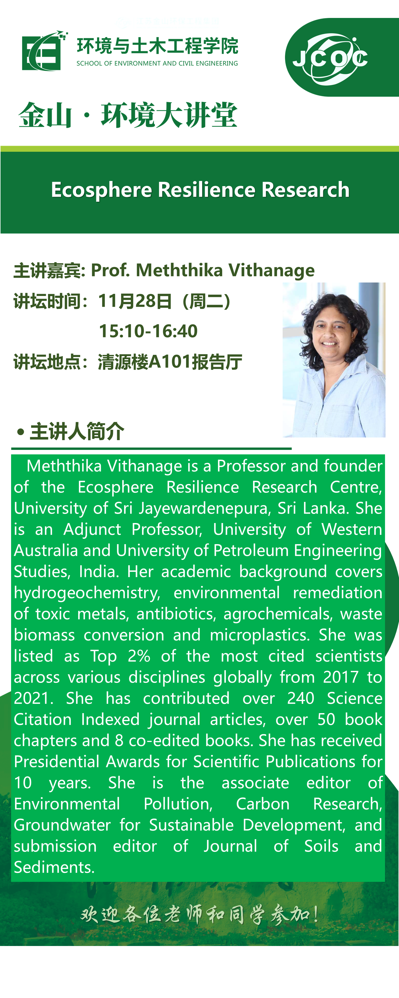 金山·环境大讲堂——Prof. Meththika Vithanage:Ecosphere Resilience Research