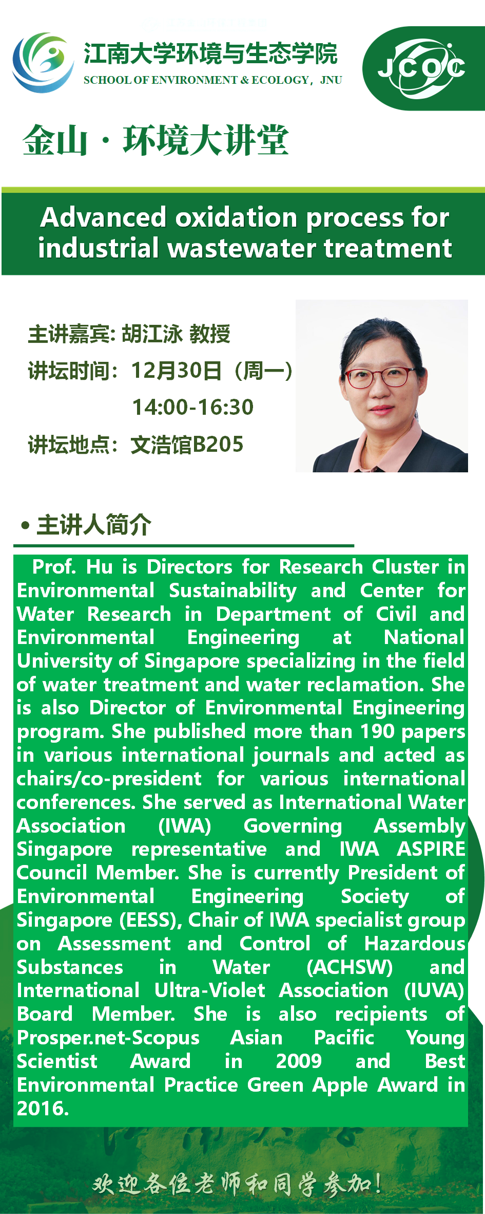 金山•环境大讲堂—胡江泳:Advanced oxidation process for industrial wastewater treatment