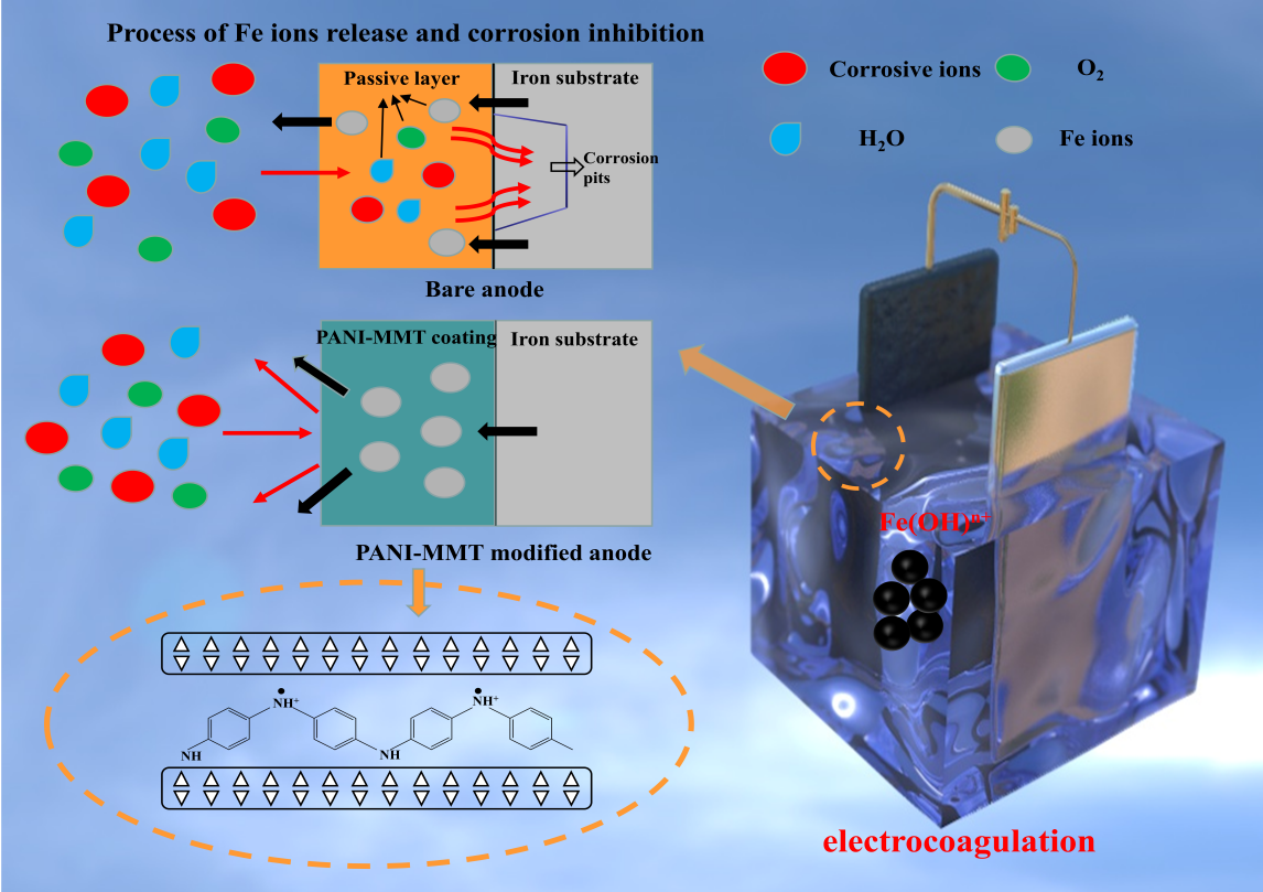 电絮凝处理电镀废水过程中铁阳极的缓蚀机制示意图
