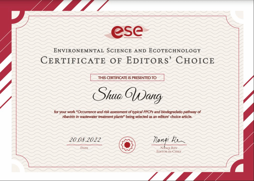环境与土木工程学院污染控制与资源化课题组李激教授团队发表于《Environmental Science & Ecotechnology》(ESE)的论文“Occurrence and risk assessment of typical PPCPs and biodegradation pathway of ribavirin in wastewater treatment plants”入选ESE Editors' Choice亮点文章。该研究调查了中国两座污水处理厂中六种典型药物和个人护理产品(PPCPs)的赋存、去除效率并进行风险评估;对利巴韦林(RBV)的生物降解产物进行鉴定,探索该药物的转化、生物降解途径和机理。该工作由研究生刘奇欣、冯萱、陈宁等共同完成,王硕副教授为论文通讯作者,玩偶姐姐