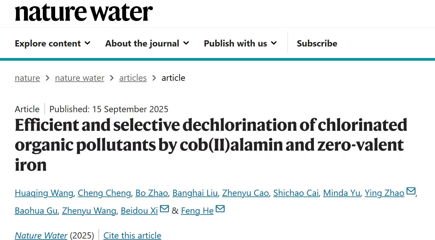 2025年9月15日,玩偶姐姐 何锋教授团队联合中国环境科学研究院席北斗研究员团队在《Nature Water》(IF:24.1)发表重要研究成果:Efficient and selective dechlorination of chlorinated organic pollutants by cob(II)alamin and zero-valent iron,报道了受天然脱卤酶启发而开发的由维生素B12(钴胺素)与微米零价铁(mZVI)组成的仿生系统,实现了水体氯代有机污染物的高效脱氯和资源回收。