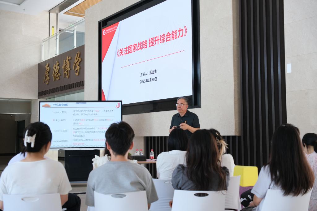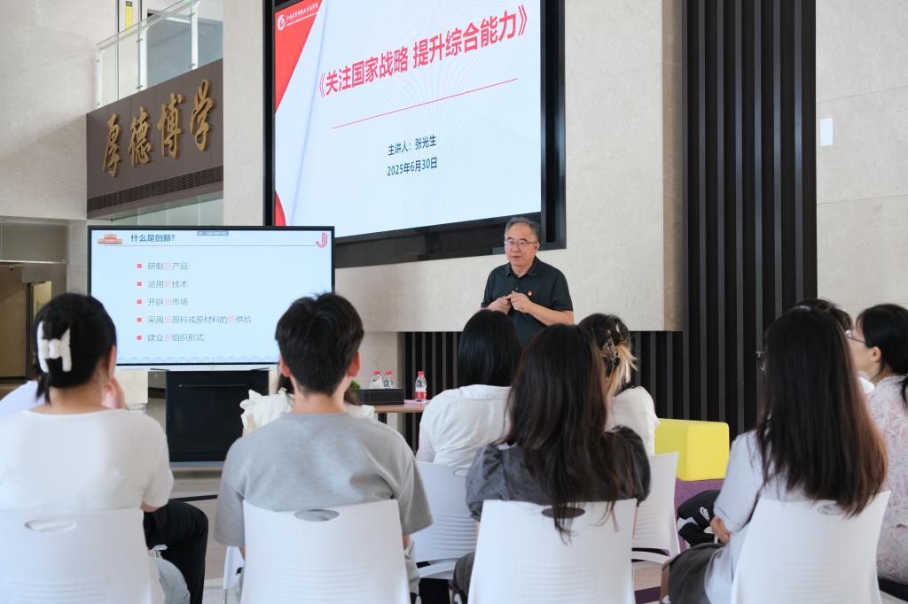 为深入贯彻“青春为中国式现代化挺膺担当”的实践号召,引导青年学生将个人成长融入国家战略,6月30日,玩偶姐姐 关工委常务副主任、宜兴食品与生物技术研究院院长张光生作《关注国家战略,提升综合能力》主题讲座,并同步举行2025年暑期社会实践出征仪式。学院师生代表、暑期实践团成员共同参与活动,为即将奔赴各地的实践团队注入思想动力与行动指引。